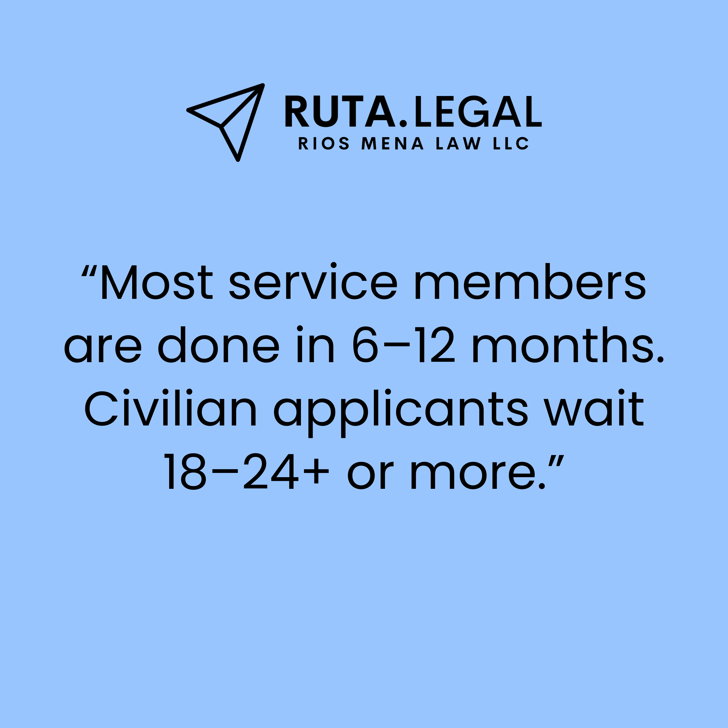 Most service members who go through the military naturalization process are done in 6–12 months, start to finish. Civilian applicants are typically looking at 18–24+ months for the same result. That's a significant difference. It's worth understanding why and where the process can still slow down on you.
